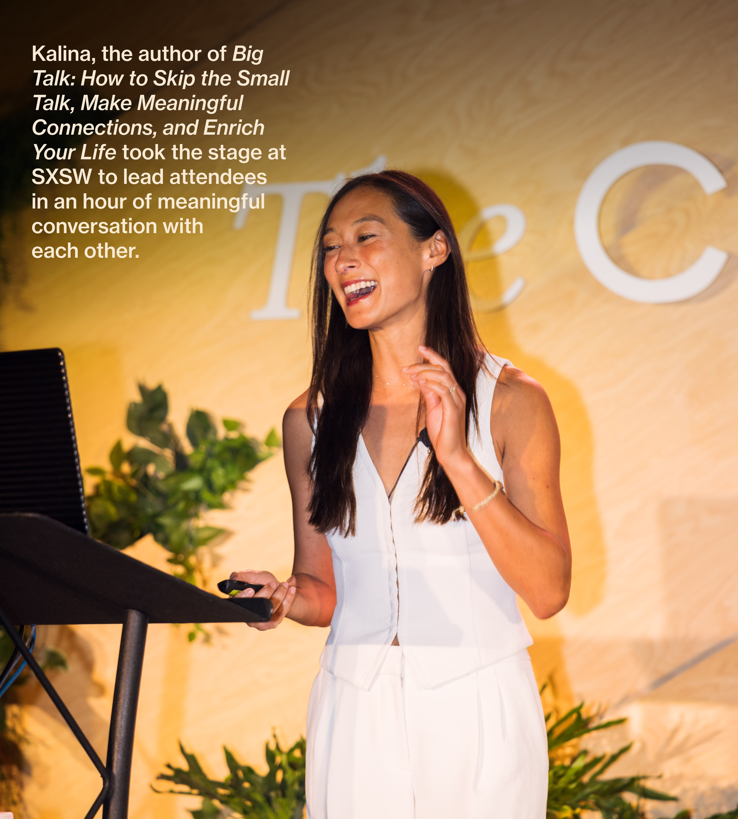 “Kalina gave a ‘Big Talk’ presentation at my company’s annual marketing summit. Key speakers predominantly discussed the latest trends in marketing tech and strategy, but Kalina’s segment offered value in a different way - by reminding us of our humanity and deep need for connection. She meaningfully wove the relevance of ‘making Big Talk’ into the context of the marketing landscape and left the various industry leaders present in the audience something unexpected - and moving - to contemplate.”
